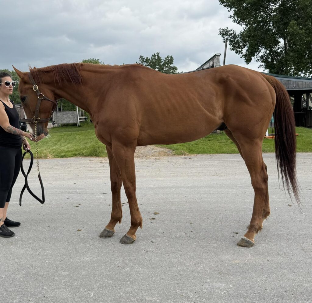 Dr Blarney is the very essence of racing royalty, earning over $780,000 in his distinguished career, but it’s time for this king to find his next career! This huge hunk of a horse is very kind and reasonable. He is reported to have no vices in the stall and is wonderful at home on the farm. During his downtime he even lives outside 24/7.