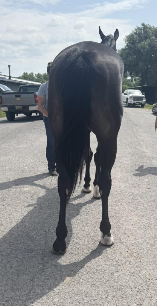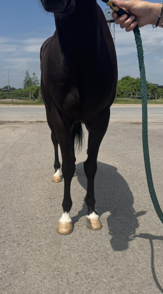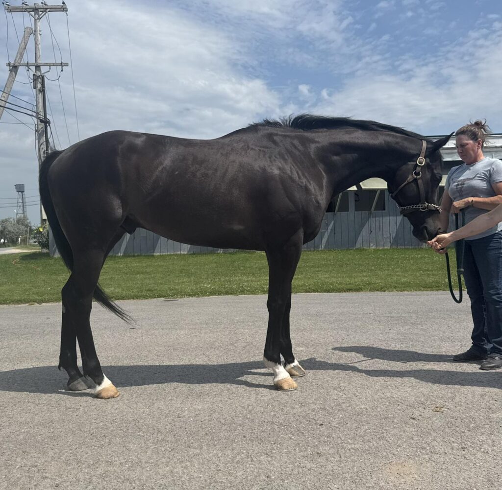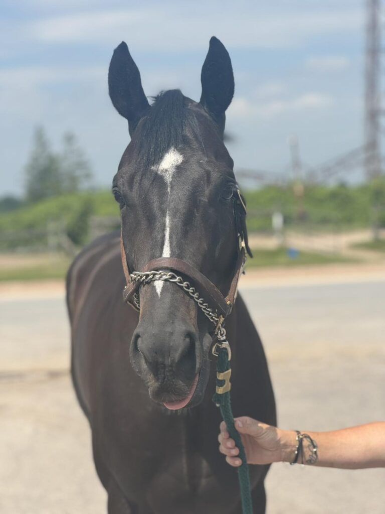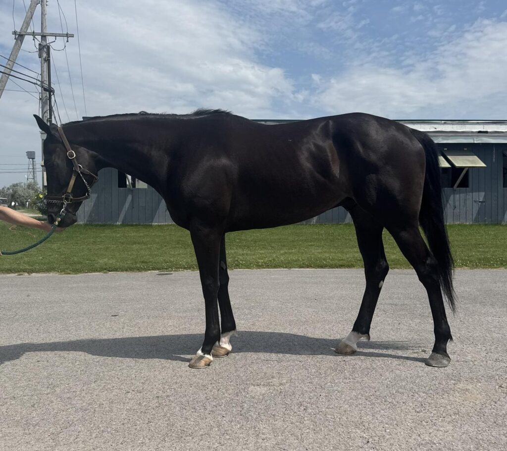 Under saddle, Hoppy doesn’t offer a single bad habit. He’s very light in the hand and goes in a D bit. One of his exercise riders has been taking him to the track to keep him doing something, and he will stand and watch others train, go gallop, then come back and stand quietly again. This guy is bred for synthetic footing, doesn’t love the surface at Finger Lakes, and his owners don’t want to ship him to run, so his connections feel it’s best to find Hoppy a new career.
