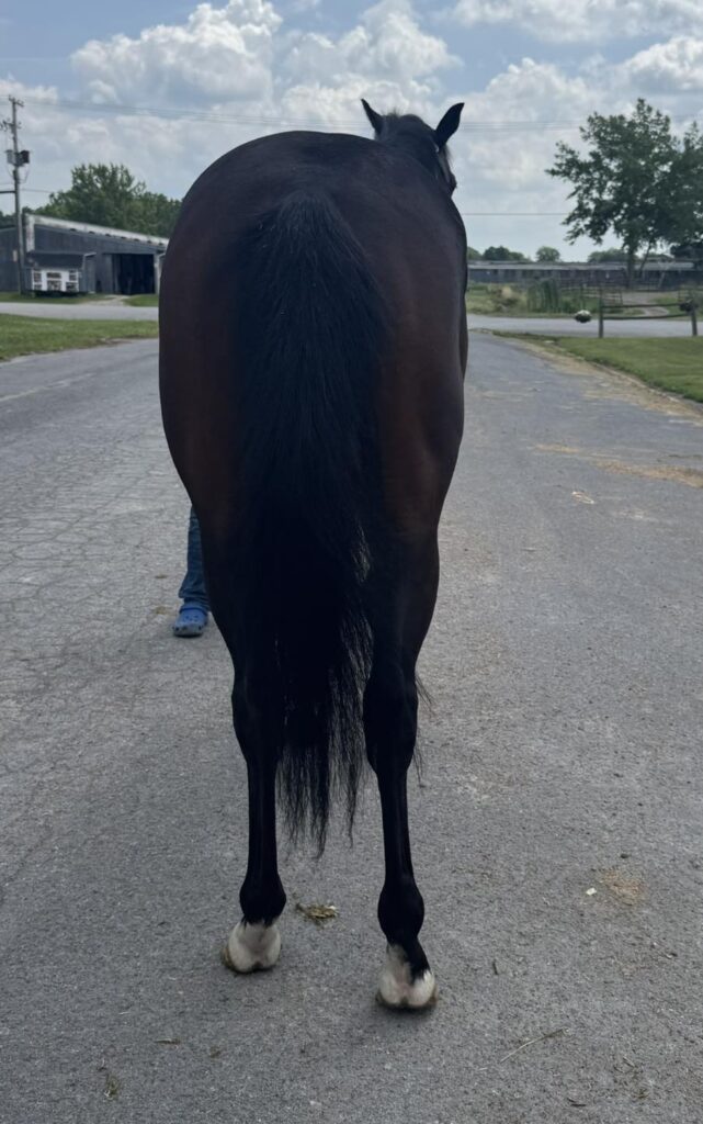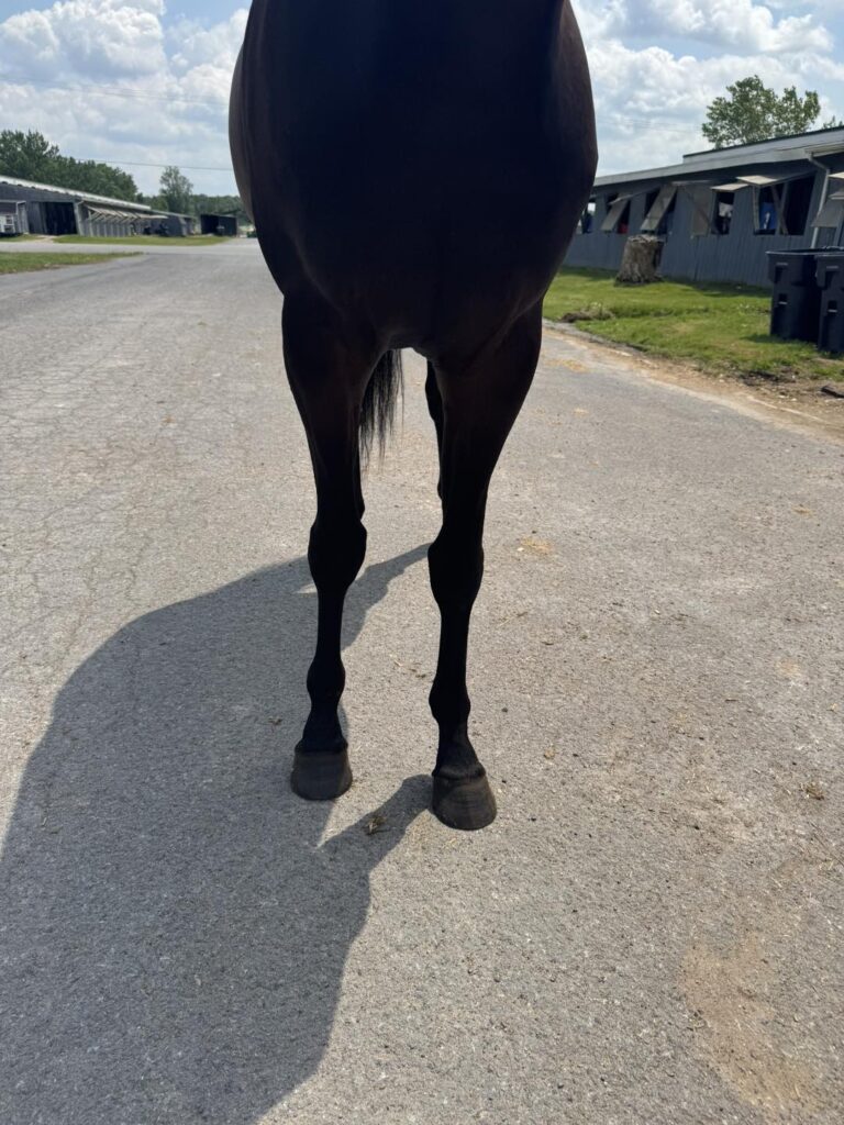 Frontal Vision is a straightforward ride with no funny business. He is feeling a bit up now as he has not been doing anything recently. He does have knee chips in the right front upper joint. Rads are available to interested parties. He is also currently barefoot and was a bit tender for our jog video. He did show off his friendly personality for his photo shoot and enjoyed being gushed over and admired.