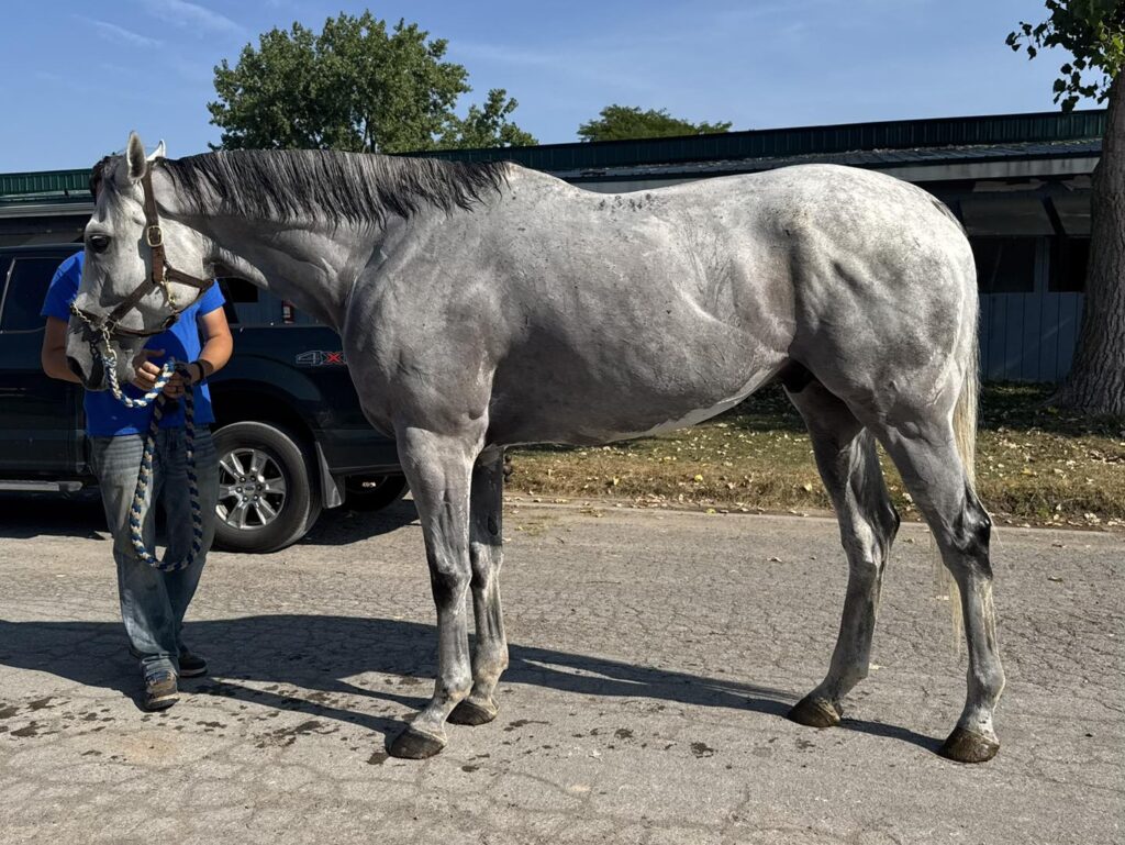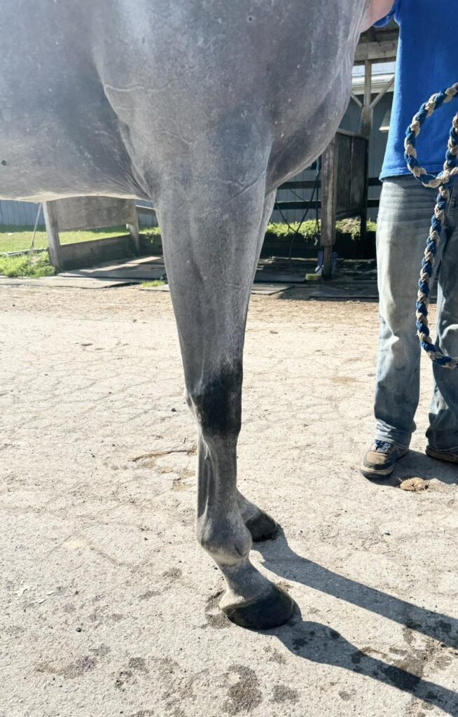 Guaco is reported to be sound but does have a big osselet on his front right. He has raced with this and, per his connections, it hasn’t caused him any issue. They do have rads available to interested parties, but they are older. His connections have decided Guaco has paid his dues, and is ready to move on to a new career. He is currently barefoot, but still demonstrated a floaty, flat-kneed jog.