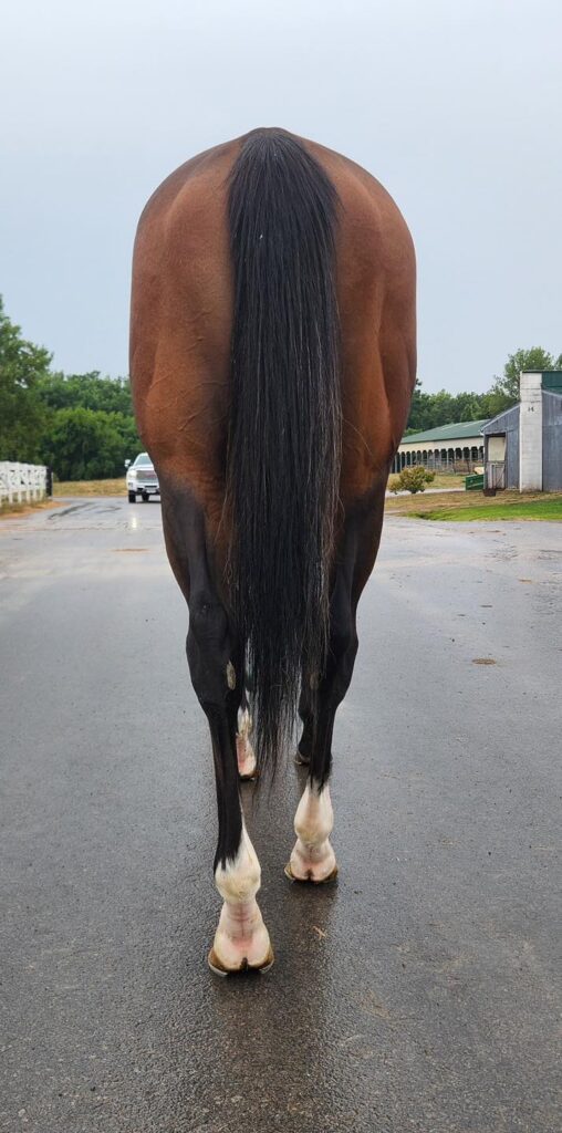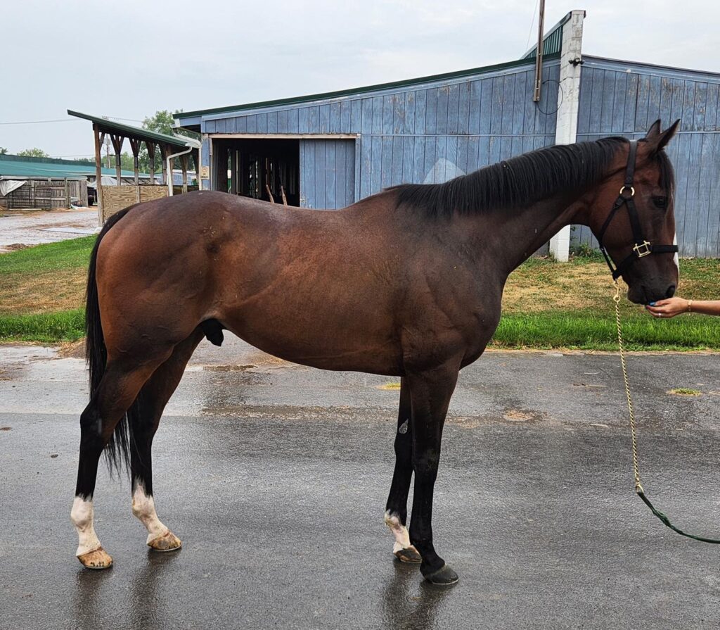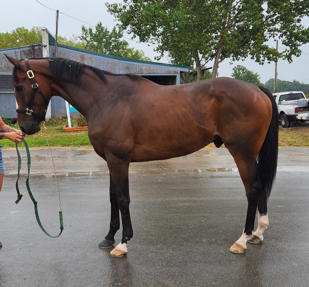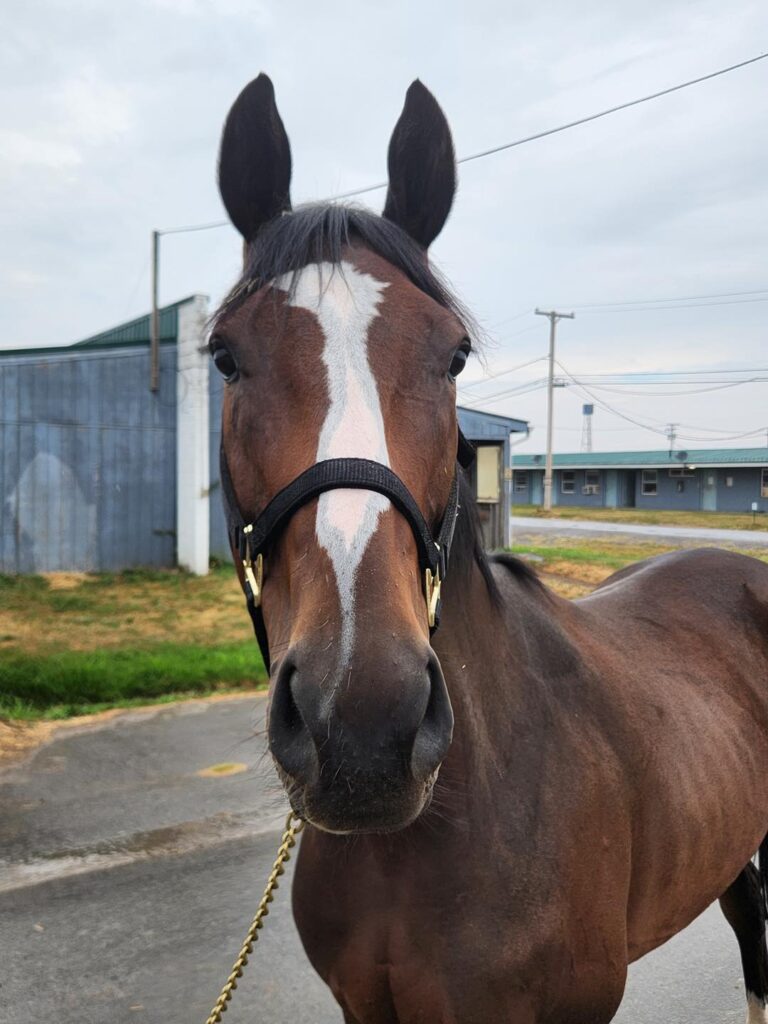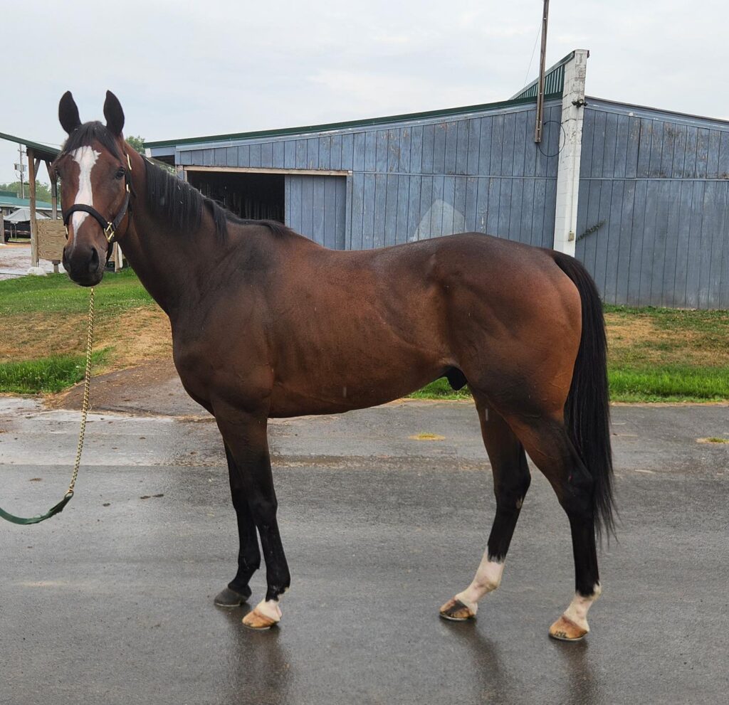 This cute, friendly gelding was a complete ham and the definition of the “in your pocket” type. We really liked his solid, balanced, and nicely proportioned body. We were told that he is “nice and easy” to work with and ride, without any vices. We observed a happy and friendly horse who was quite chill and very agreeable during his photos and jog video and seemed to enjoy the attention. We noticed loose and relaxed movement at the walk and watched him jog on a loose lead, attentive to his handler, with flowing movement demonstrating some spring and loft. We were told that he’s “just not interested in running”. He does however have an entry for 08/25 if you’d like to see him run. But why not bring the trailer along and take him home afterwards to start his new life as a pampered show pony? Paul is by Street Sense out of a Grand Slam mare with Gone West, Coxs Ridge and Relaunch also appearing in his pedigree.