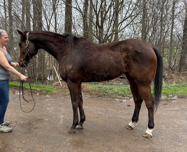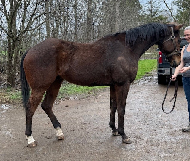 We didn’t even have to do a write up on this gallant war horse, since one of our volunteers fell inlove and brought him home!