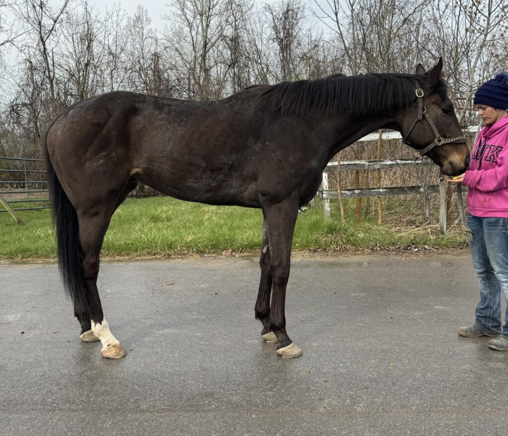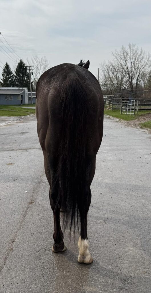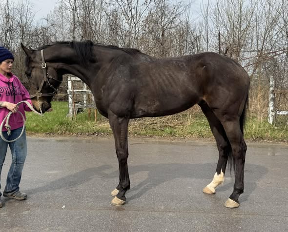 Tall, dark, and handsome? Check, check, check. Mudville Nine will check all those boxes and more. This very sweet guy is reported to be very easy to work around and a pleasure to have in the barn. The only not so perfect barn mannerism is that he gives nasty faces when he has his grain. His connections believe that this may be because he was so low in the pecking order while being turned out over the winter.