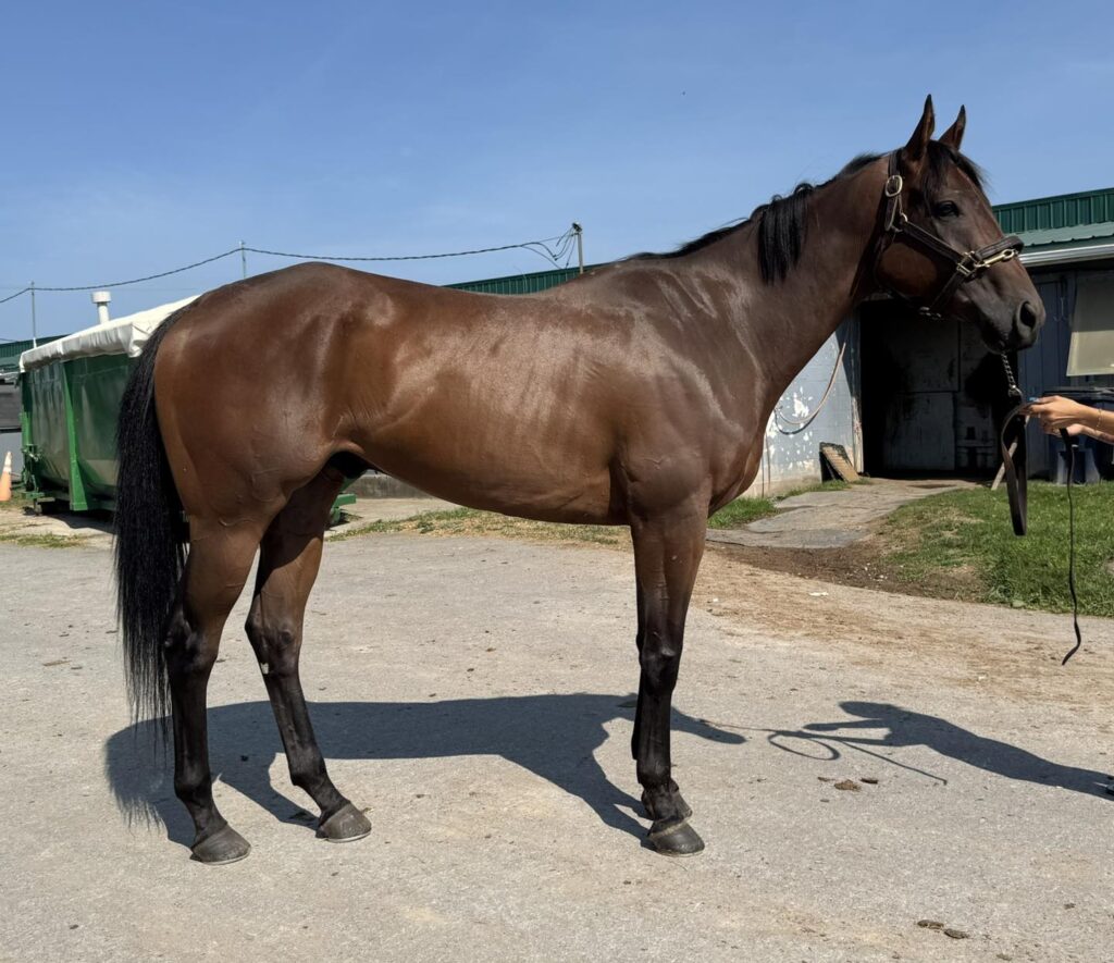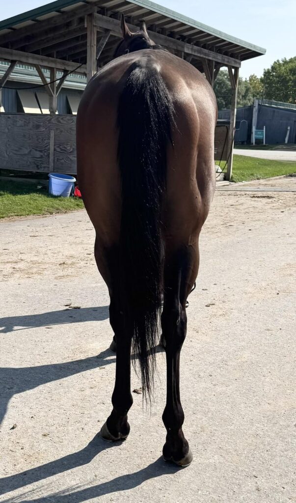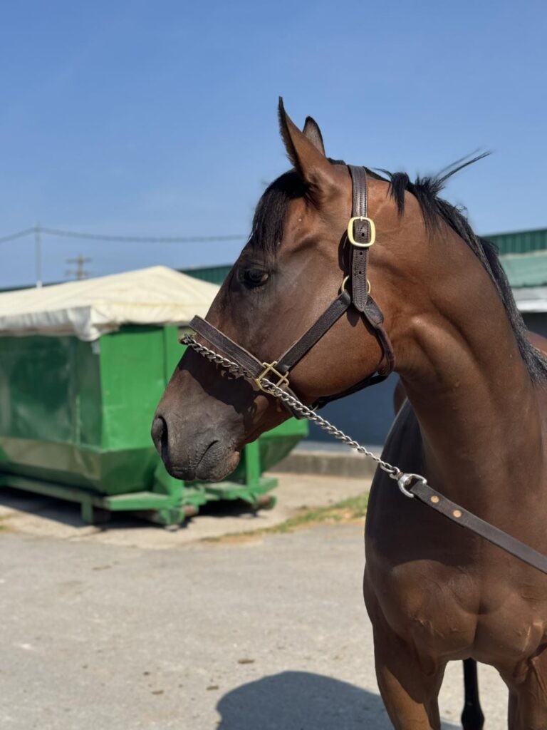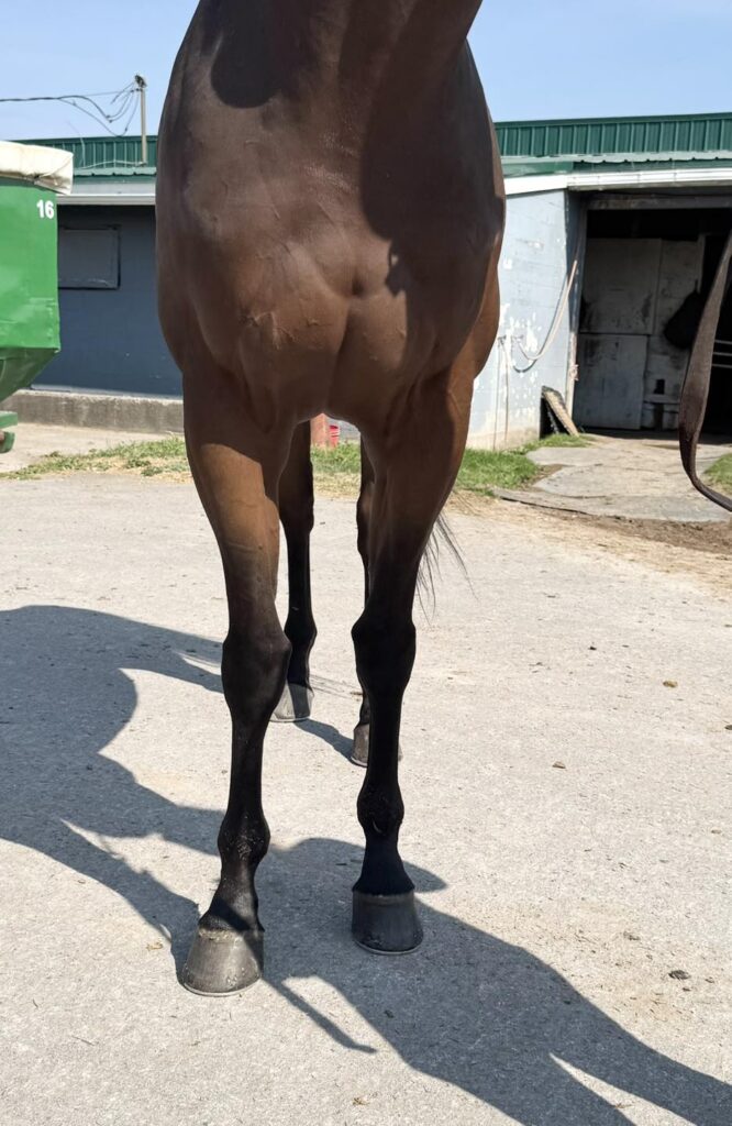 If tall, dark, handsome, and super slow checks your boxes, then My Kinda Crazy may just be your kinda crazy, too! This guy is reported to be vice free, super sweet, easy to handle, and nice to have in the barn. His connections say he doesn’t really ever do anything wrong and is easy to get along with. His connections state that “chill dude” is the best way to describe this youngster, and he certainly proved that to be true during his photo shoot. Like the other photographed in the day, he was so relaxed that he kept resting one foot or another, happy to be out of his stall and admired.