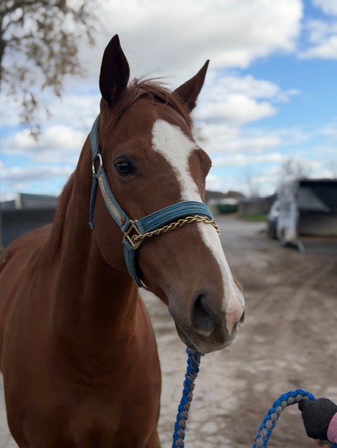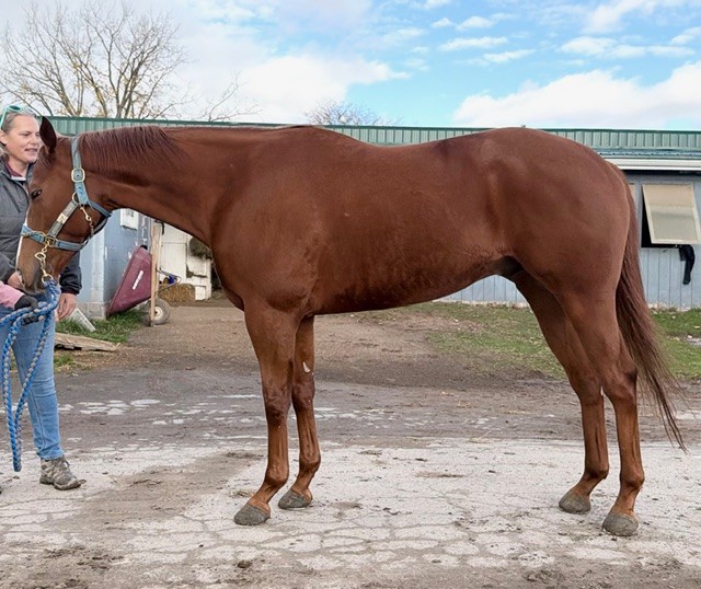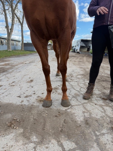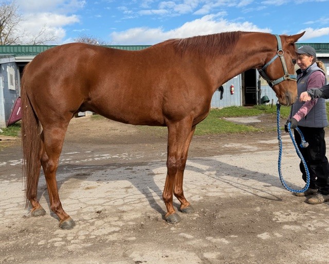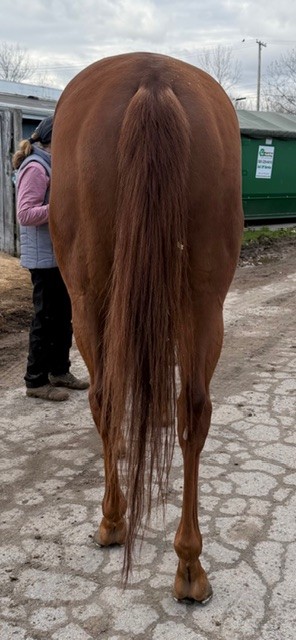This is one big, handsome, thick, solid tank of a horse! We admired his wide chest and big, long shoulder. We also thought he had a cute and very sweet face. His handler said that he’s an easy keeper and that “we feed him like a Quarter horse”. We were told that he’s very good in his stall, with no vices, and is easy to handle. We observed a sweet, snuggly, and very affectionate boy. Especially when we brought out the peppermints! He was super-friendly with all the volunteers and stayed calm and quiet while being alert and interested in everything going on around him. He appears to be a very self-assured boy.