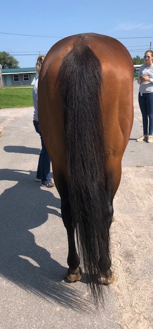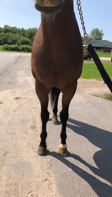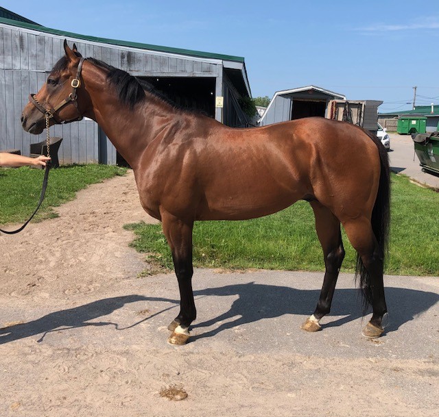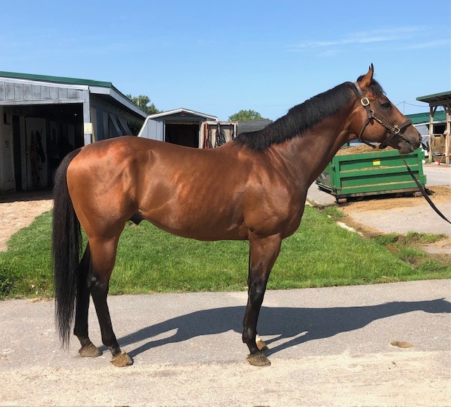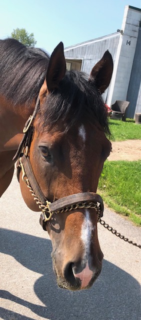 Wow what a handsome hunk of horse. Victory Built’s owner/trainer adores him and describes her beautiful boy as a very kind horse, with loads of personality. She claimed him at the end of the 2023 racing season because she had admired his personality and beauty and his excellent racing history. After bringing him back to the races this year, she noticed that his heart didn’t seem in it anymore and he wasn’t going to return to the racing successes of his past that had him winning at the top level NYRA circuit and racking up a 50% top three record in 50 starts with over $250,000 in earnings. His 2024 race makes him fully eligible for the 2025 or 26 RRP. She recently gelded Victory Built, but she told us that he never acted studdish when he was intact. She says that Victory Built is sound, but he does have old “ankle jewelry” (in non-track lingo, old set osselets) that he has raced on for a while and should not limit him for any new career. On the day we photographed him, he had not done much other than shedrow walking for a few weeks since she had decided to take him out of race training, so while he posed quietly and perfectly, he was understandably a bit full of himself for his jog video. Nonetheless, he still showed very nice movement, with a light and lofty trot, good hind end engagement, and reach from the shoulders. Based on his build, movement, and pedigree, we think he has excellent sport horse potential in many disciplines, ranging from dressage to eventing to H/J. He is sired by Big Brown, a sire well known for getting good jumpers and eventers, who is from the Danzig sire line. His dam is by Dixie Union who is by Dixieland Band. Broad Brush, Roberto, Damascus, and Northern Dancer are other top sport horse TB sires in his pedigree.