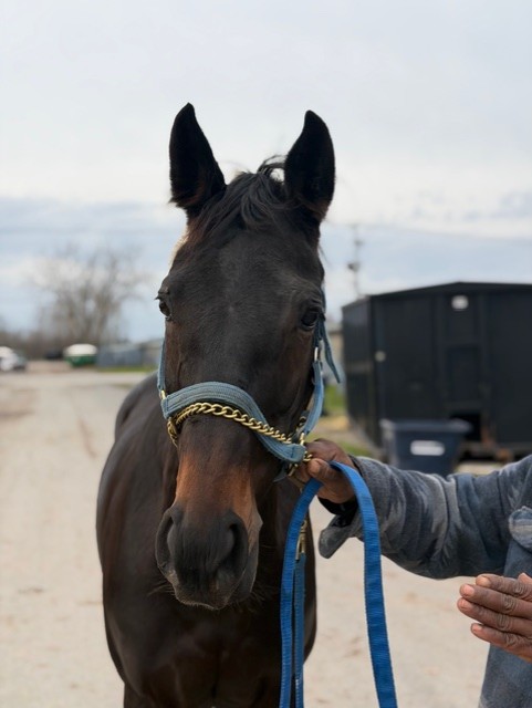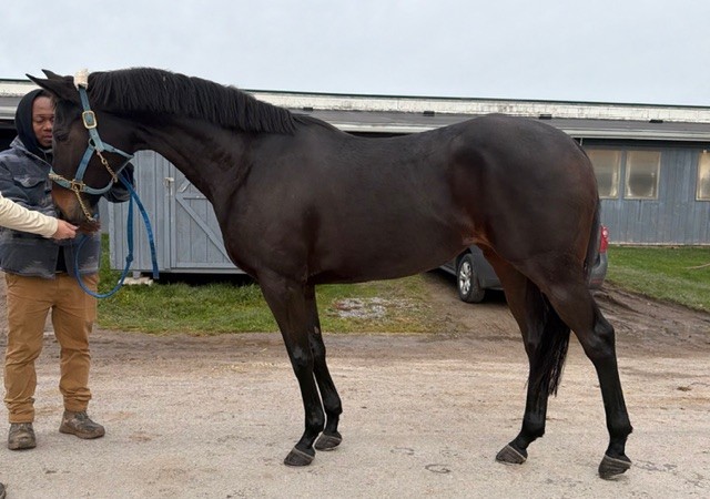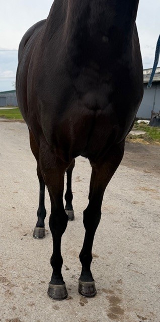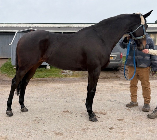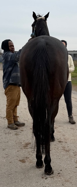 Wine Trail is reported to be good to ride with no funny business. She’s reported to be sound with no previous injuries. For her jog video, she tried so, so hard to behave, even though her friend on the walker beside us was getting very, very excited. But every time, she remained respectful and calmed right back down. Wine Trail is by Commissioner, who is by AP Indy and out of a Touch Gold mare, all sought after for their trainability and excellent brains. She is out of a Quiet American mare. This one is sure to get you noticed in just about any arena!