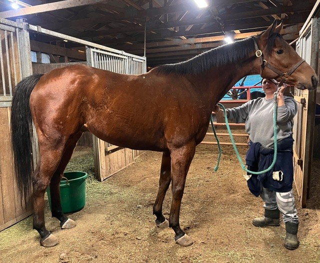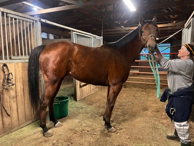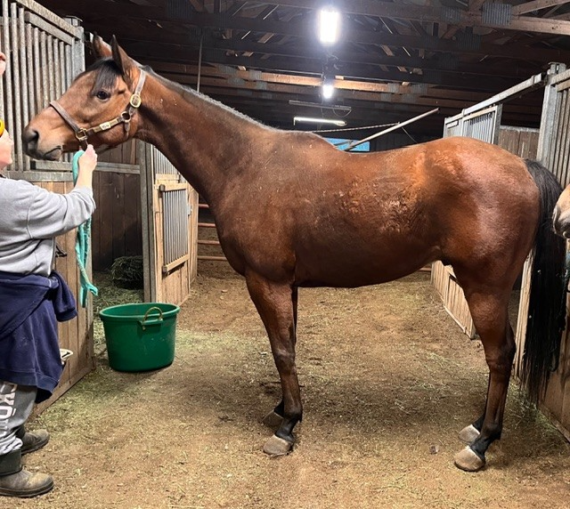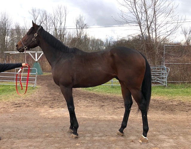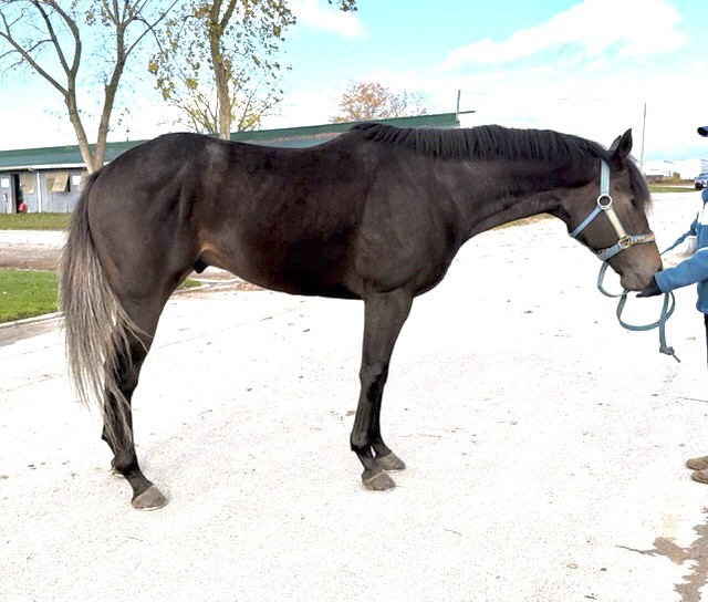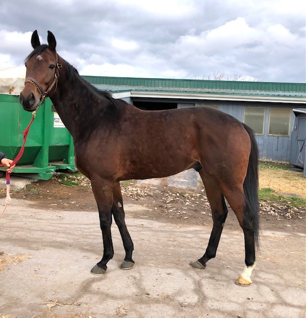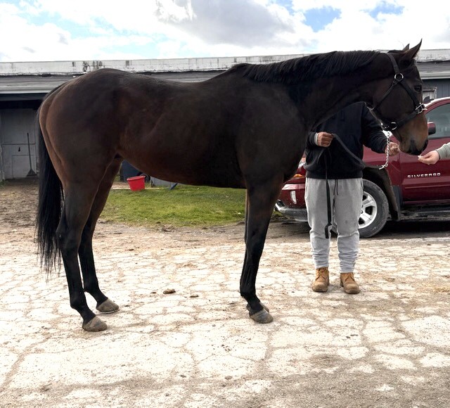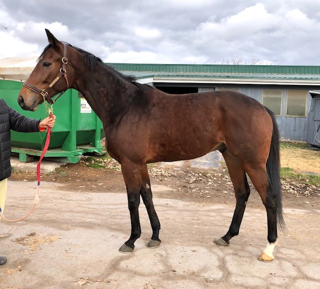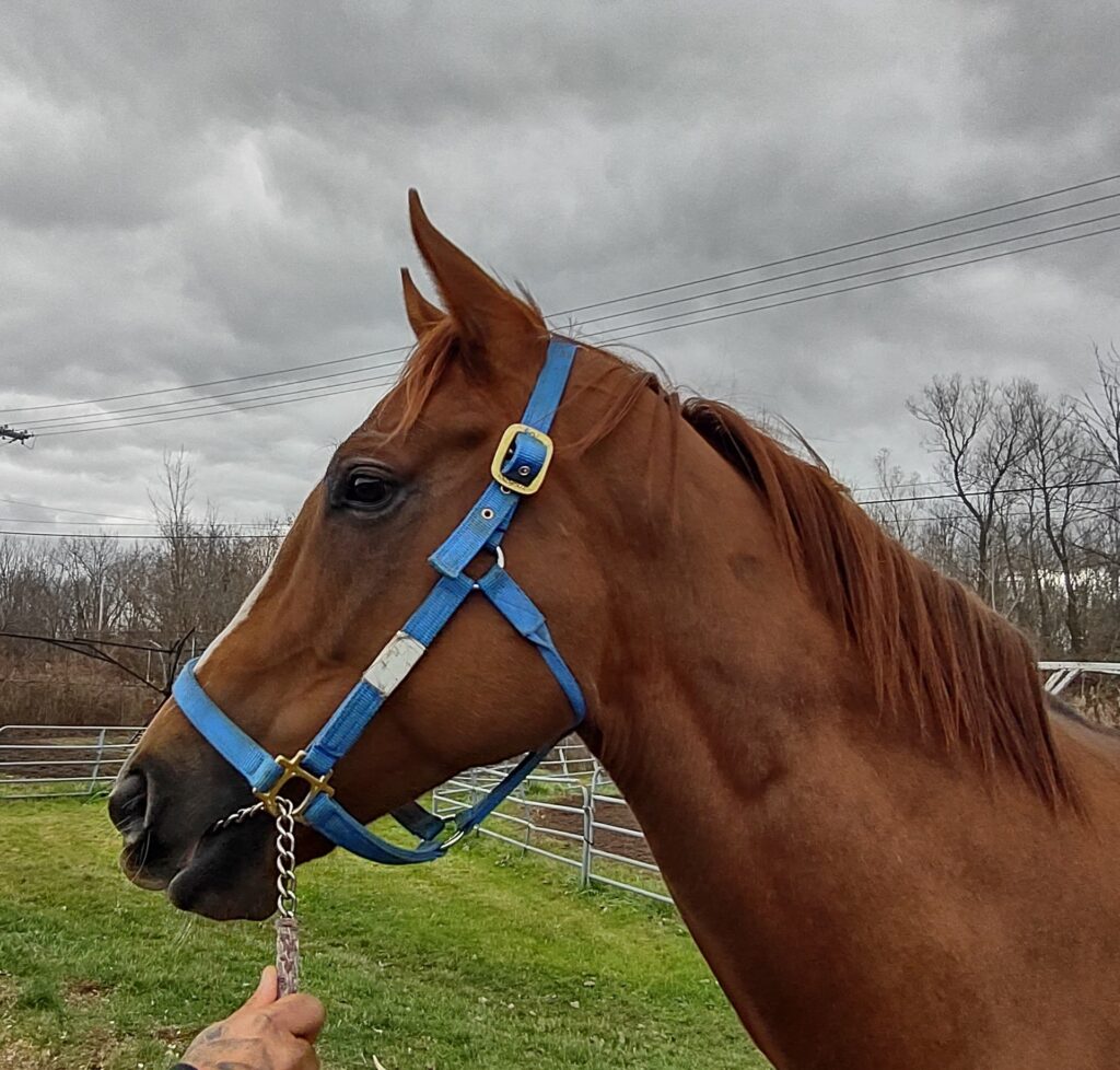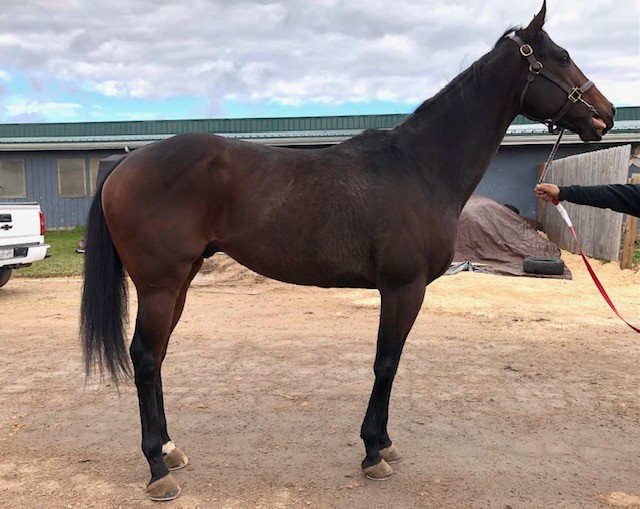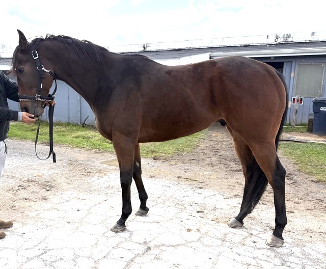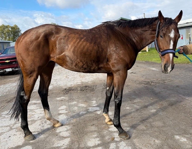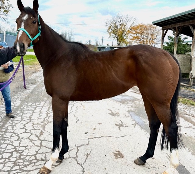 Her name says it all… she is a lotta cuteness and spunky athleticism in a sporty compact pretty package. Our volunteers thought she is adorable, and we think that her sass and obvious athleticism and catlike quickness will suit her well in many new disciplines — polo, barrel racing, jumping. She has a nicely balanced compact build with a strong sloping shoulder, and we observed clean legs. Her handler said she is sound and has not had any issues and that she has no vices. He said that while she is feisty, she is friendly. She would be best for an experienced person who knows how to let down and restart OTTBs who can appreciate her spunky athleticism and channel it into a new discipline. Like most OTTBs, once she is off the track and enjoying turn out, she is likely to settle down. She was “up” for her jog video on a cold breezy day, but despite being on edge she showed light and springy nice movement. She has accumulated a decent racing record, with three wins, six seconds, and three thirds in 21 starts, but now that she has to face a tougher level of competition she hasn’t fared as well, so her connections would like to let her move on to a new career while she is still young and sound. She is sired by Bustin Stones, a son of City Zip who produces athletic quick offspring who have gone on to do well in many disciplines from barrel racing to jumping. Her dam, Crazy Cat Lady, is a stakes placed daughter of Freud — another sire known for offspring who are athletic and good jumpers.
