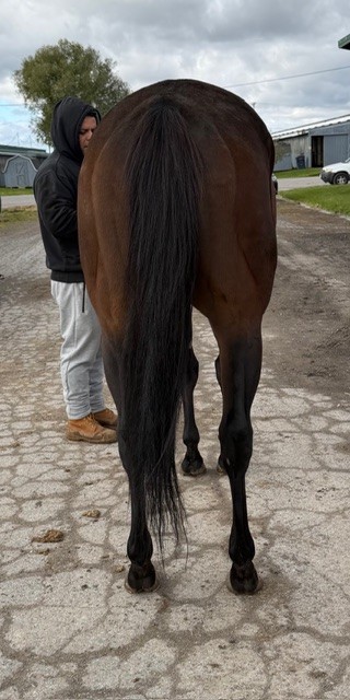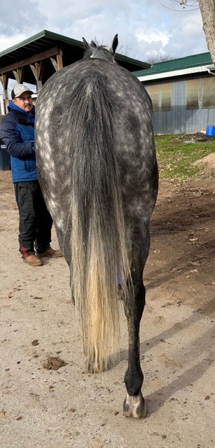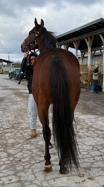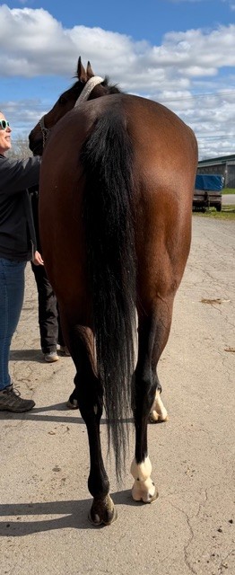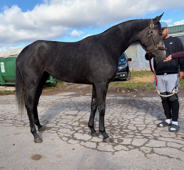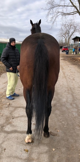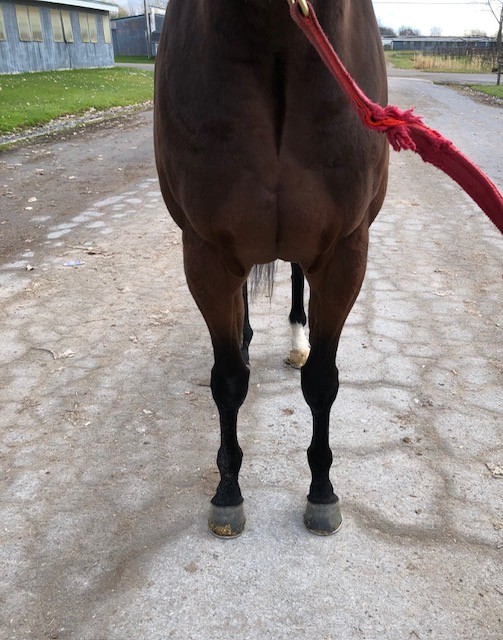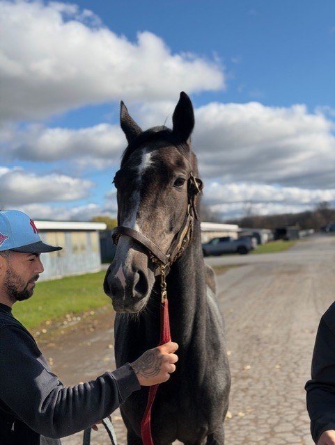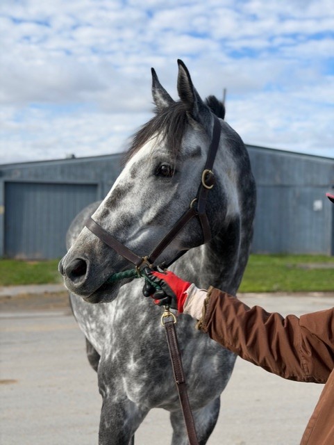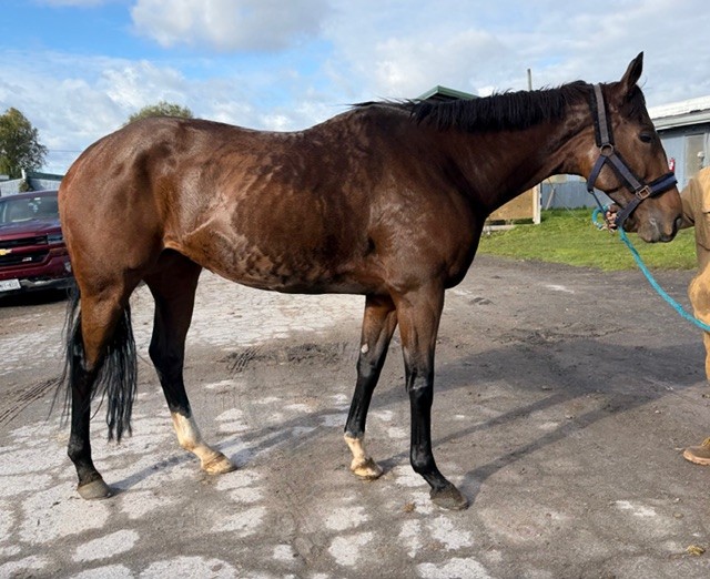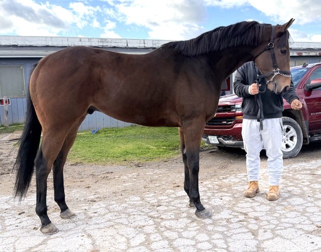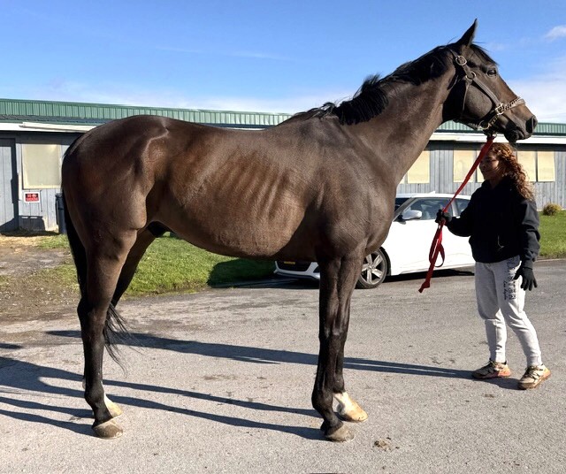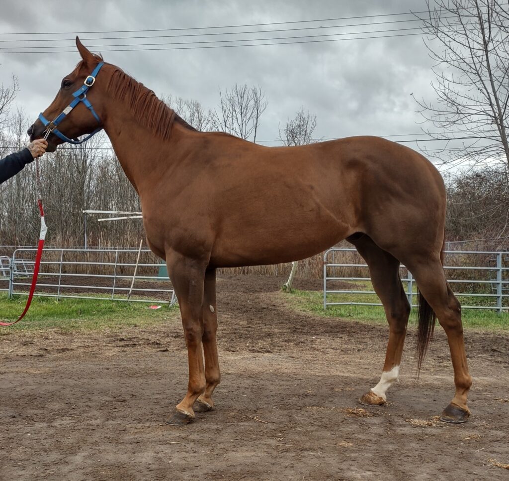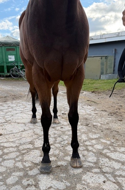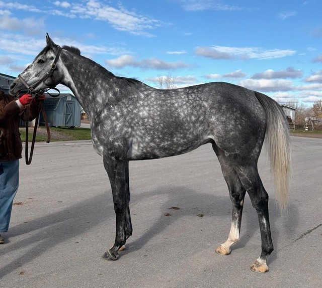 Her name says it all… she is a lotta cuteness and spunky athleticism in a sporty compact pretty package. Our volunteers thought she is adorable, and we think that her sass and obvious athleticism and catlike quickness will suit her well in many new disciplines — polo, barrel racing, jumping. She has a nicely balanced compact build with a strong sloping shoulder, and we observed clean legs. Her handler said she is sound and has not had any issues and that she has no vices. He said that while she is feisty, she is friendly. She would be best for an experienced person who knows how to let down and restart OTTBs who can appreciate her spunky athleticism and channel it into a new discipline. Like most OTTBs, once she is off the track and enjoying turn out, she is likely to settle down. She was “up” for her jog video on a cold breezy day, but despite being on edge she showed light and springy nice movement. She has accumulated a decent racing record, with three wins, six seconds, and three thirds in 21 starts, but now that she has to face a tougher level of competition she hasn’t fared as well, so her connections would like to let her move on to a new career while she is still young and sound. She is sired by Bustin Stones, a son of City Zip who produces athletic quick offspring who have gone on to do well in many disciplines from barrel racing to jumping. Her dam, Crazy Cat Lady, is a stakes placed daughter of Freud — another sire known for offspring who are athletic and good jumpers.
