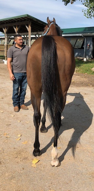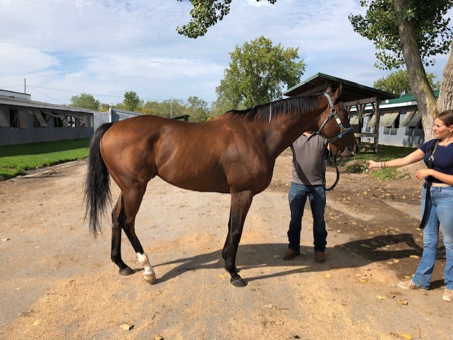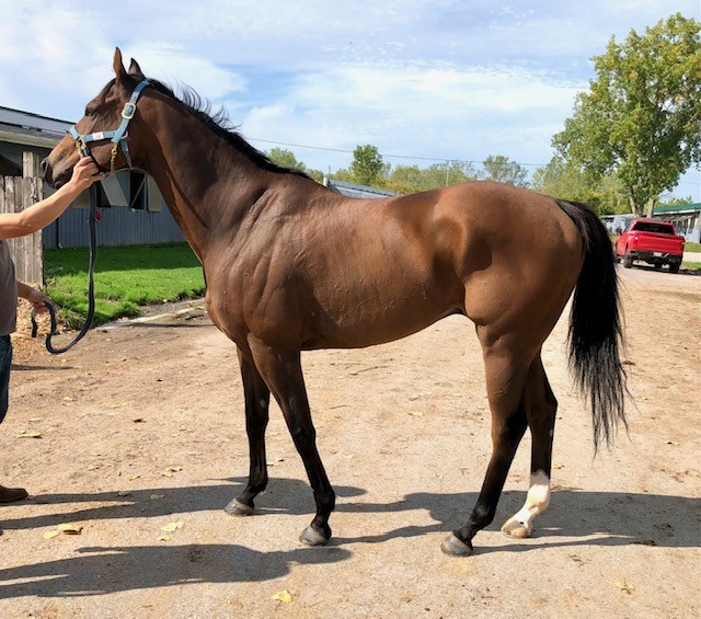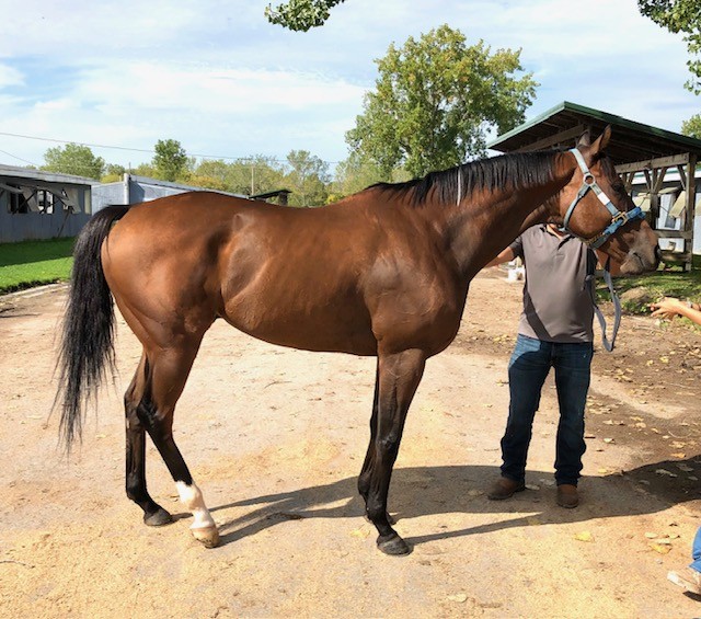 This cleverly named son of Fed Biz impressed us with his solid build, strong shoulder, and lovely movement with great reach from his shoulders. His trainer told us he is a nice and sound horse who has had no issues, but it is time to let him move on to a new career since he has not been as successful in his races this year as in past years. He has over 50% top three finishes in his 25 starts, with three wins, but this year he has yet to find the winner’s circle. His handler told us he is a good horse to work with, and has no vices. He was wiggly for his photos because the person helping us plucked clover from a nearby green patch, and once she offered it to him, all he wanted to do was crawl into the clover patch — smart boy! So trust us when we say the photos do not do this beautiful horse justice! He jogged politely on a loose lead for his video, and displayed beautiful movement, light,ground covering and with great reach from the shoulders. He has an exceptional pedigree for sport disciplines. His sire Fed Biz is by the great Giant’s Causeway, and both sires are well known for successful eventers who are good jumpers, as well as for offspring who have done well in the hunter and jumper arenas. His dam is by Candy Ride and out of a Grand Slam mare. Both of these sires have proven track records of offspring who are great jumpers, and have excelled in eventing and as hunters and jumpers. He is offerd at a bargain price for such a quality young gelding, so don’t hesitate to make him your 2026 RRP horse or your long term sporting partner.